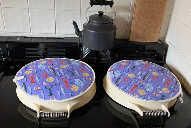 Vibrant AGA covers to brighten up the kitchen. Pair with Straker’s fish napkins for a seafood bonanza.